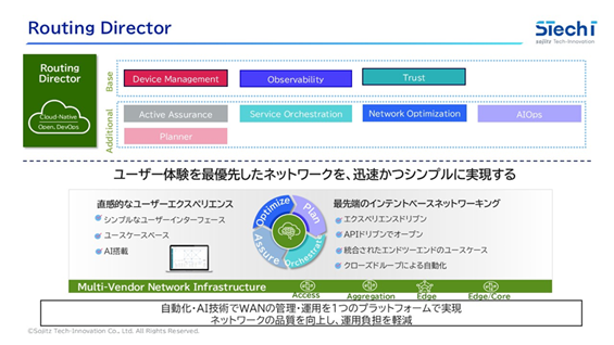 Routing Directorは、ネットワークのライフサイクル全体にわたる自動化、オーケストレーション、最適化を実現します。単なる設定投入ツールではなく、ネットワークの設計から展開、監視、診断、さらには最適化まで、一貫したアプローチで運用をサポートします。
