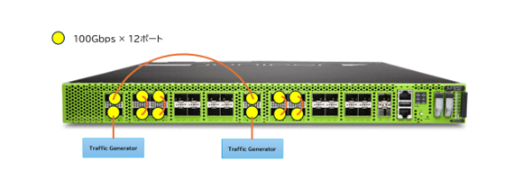 約1.2TbpsのFirewallスループット100G x 12ポート、転送レート99%)を確認しました。