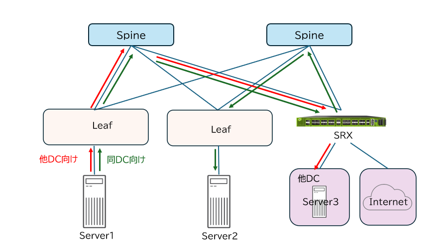 現代のデータセンターでは EVPN/VXLANで構成されたLeaf-Spine トポロジ が主流となり、East-West 通信の多くが VXLAN によりカプセル化されています。